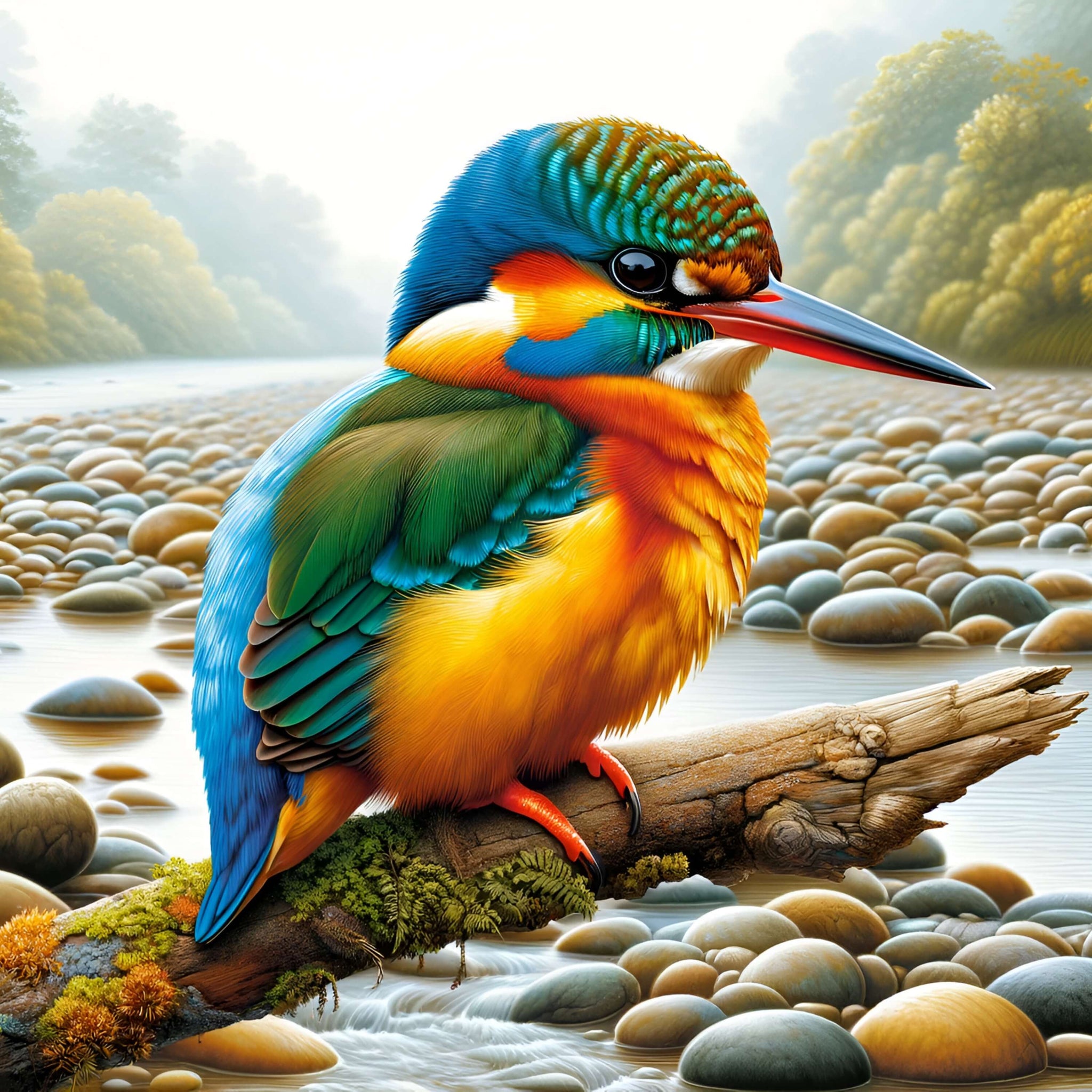 · Stunning wildlife art – hyper-detailed kingfisher illustration for a gallery-worthy finish.